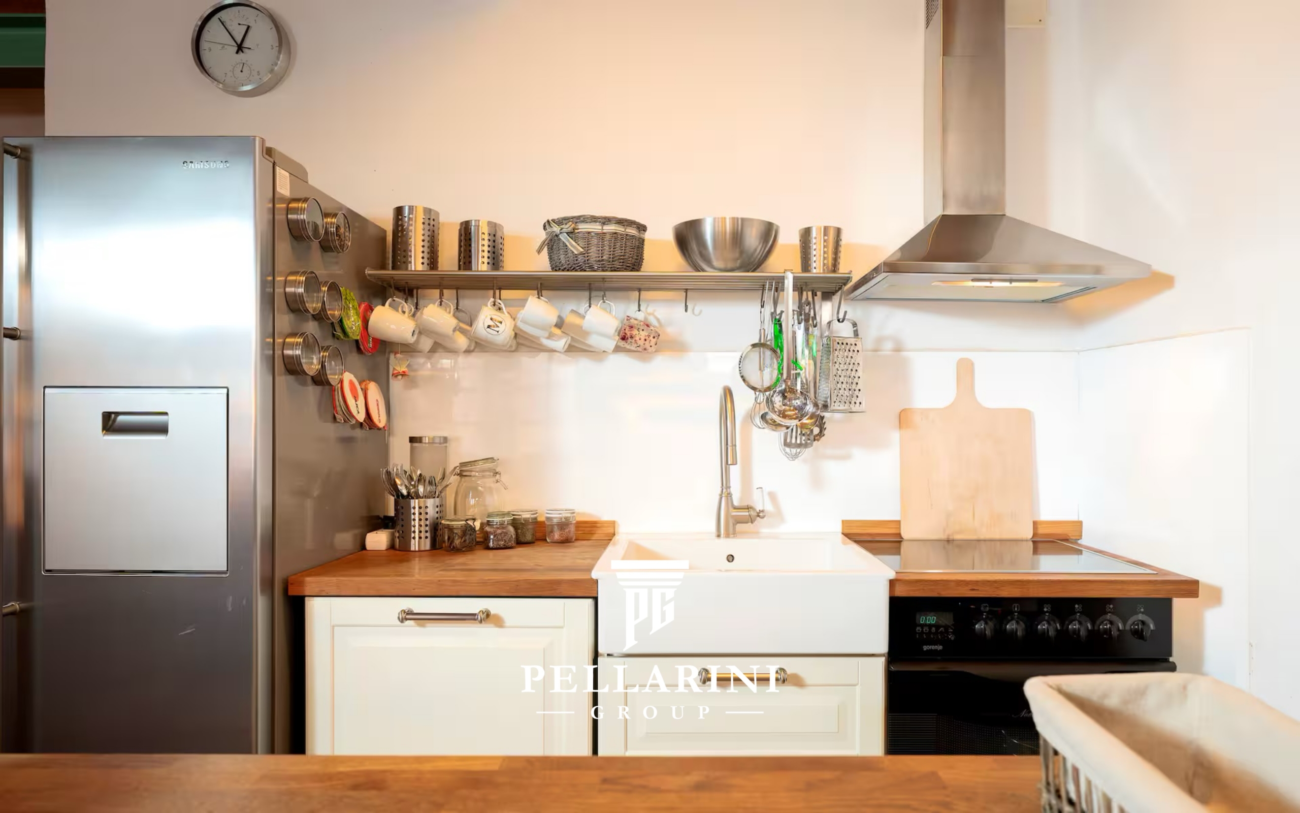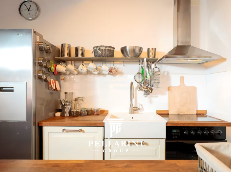 - On the ground floor, there is an open-plan kitchen with dining area and a cozy living room. This level also includes a bathroom, a separate guest toilet, and a practical laundry area.